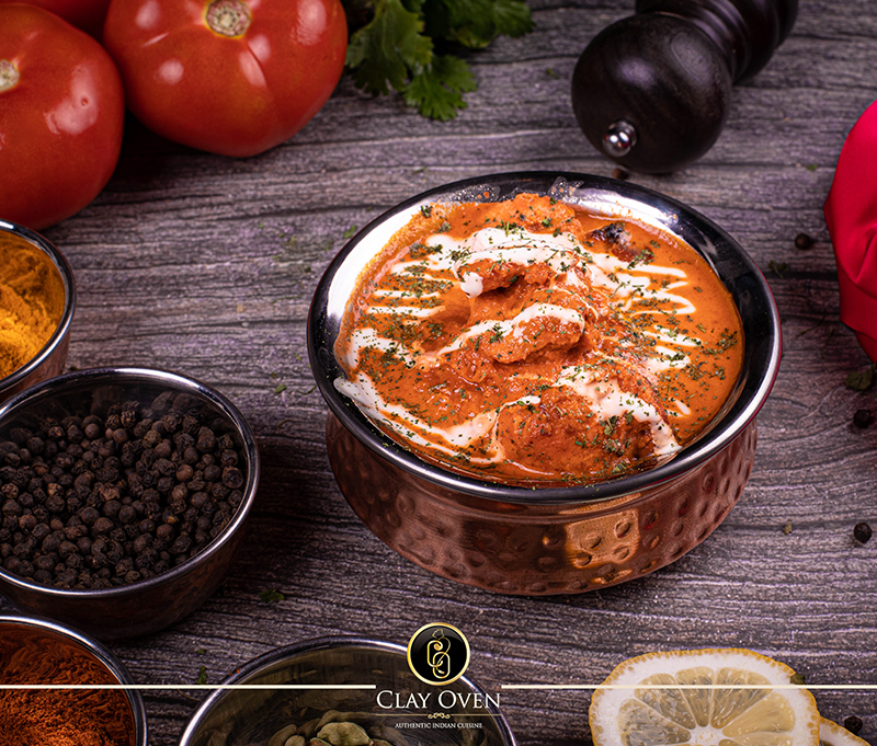Morceaux de cuisse de poulet cuits dans une sauce riche et crémeuse à base de tomates, avec de la crème fraiche, beurre et un mélange d'épices indiennes. Ce plat principal délicieux est le plus populaire de notre restaurant.