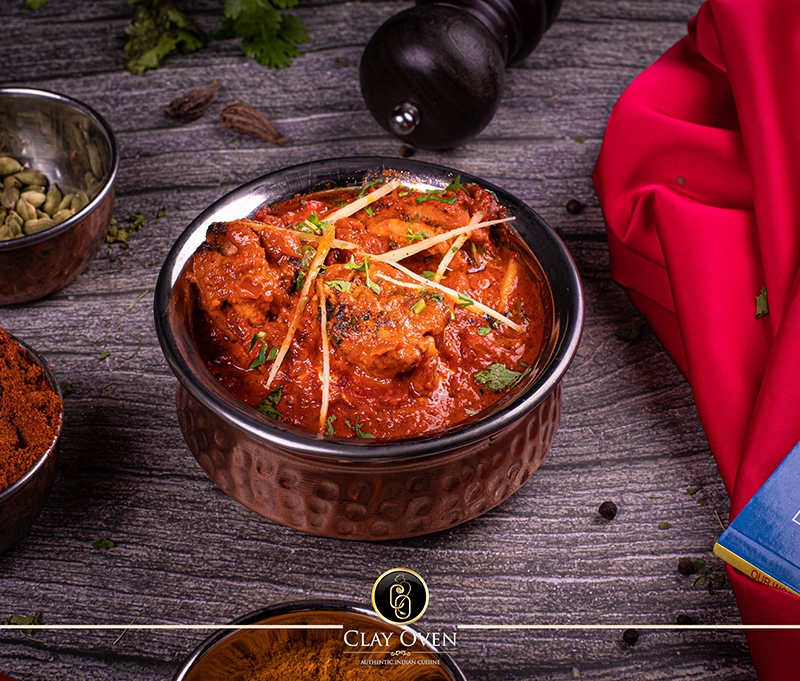 Tender chicken pieces simmered in a rich, creamy yogurt and tomato-based gravy, flavored with exotic Indian spices and garnished with fresh coriander. A luscious main course inspired by the flavors of Peshawar.