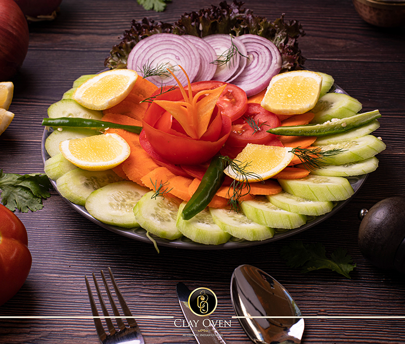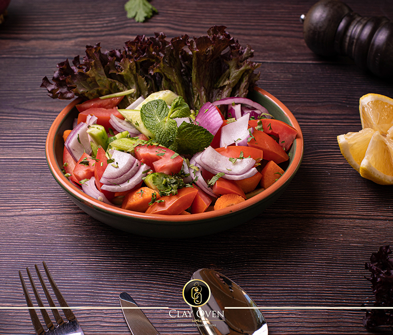 A refreshing mix of finely chopped cucumbers, tomatoes, carrot and onions, tossed with fresh lemon juice. Garnished with aromatic mint and coriander.